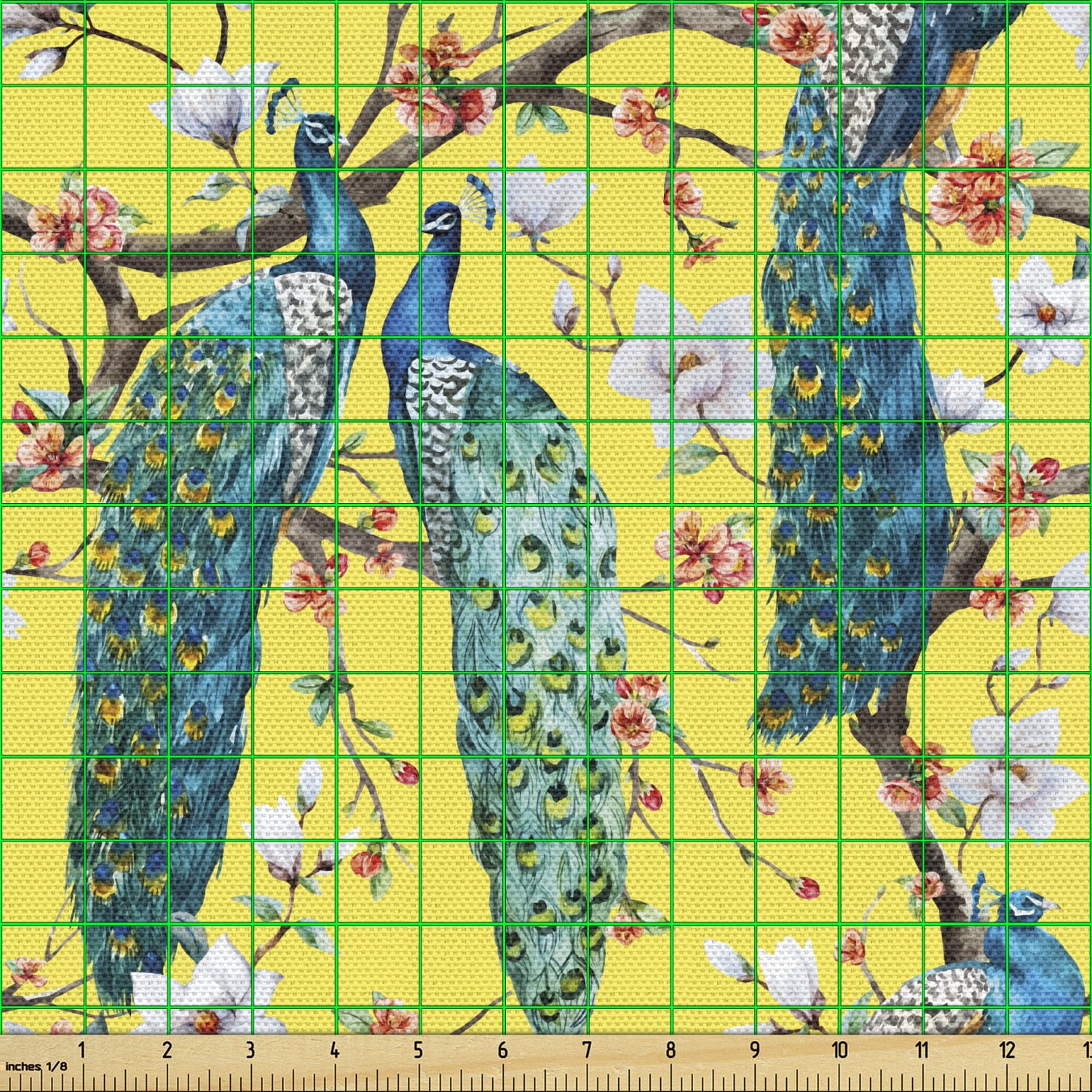 Colorful Fabric By The Yard Watercolor Style Peacocks And Long Tails On Flowered Branches Upholstery Fabric For Dining Chairs Home Decor Accents Pastel Yellow And Multicolor By Ambesonne Walmart Com