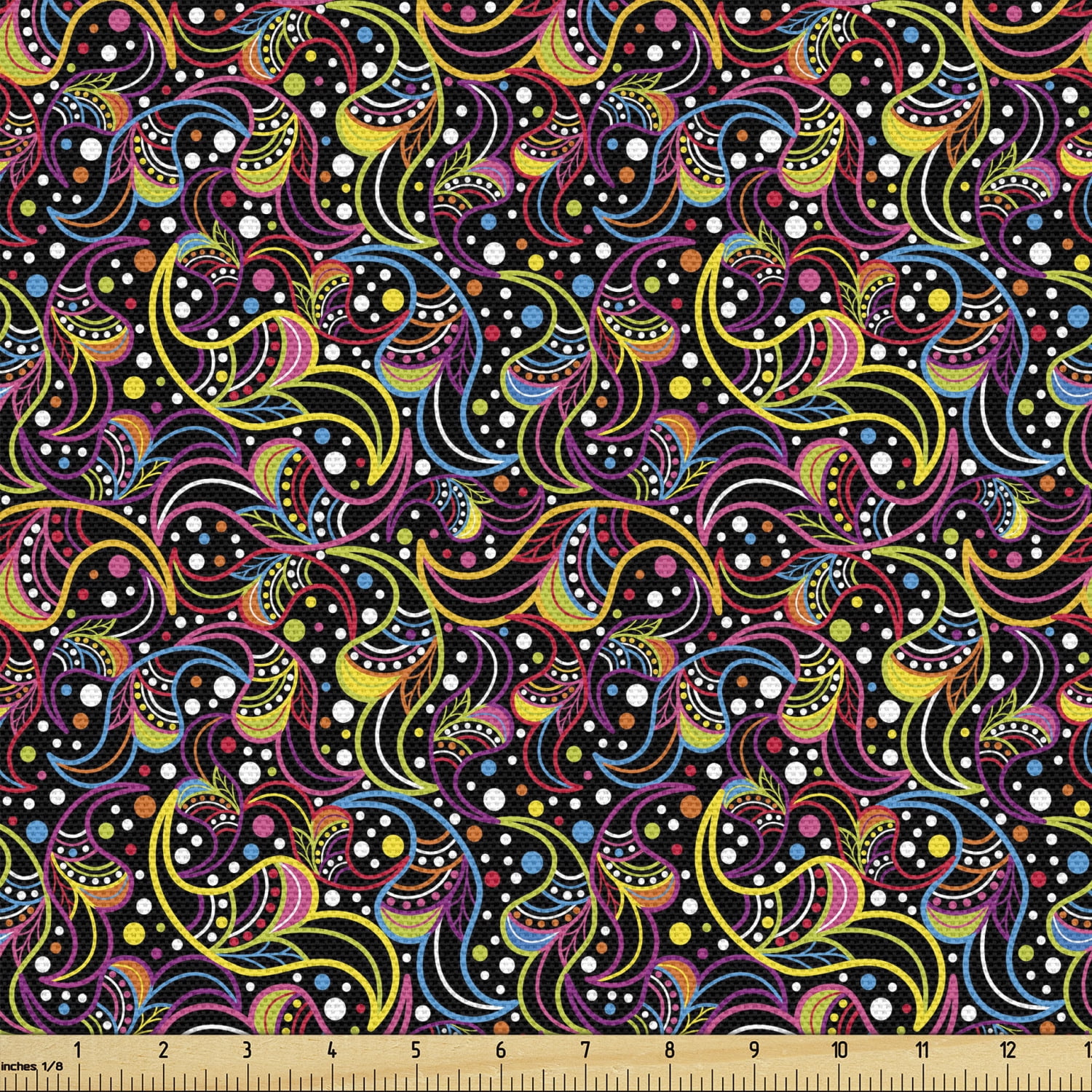 Abstract Sofa Upholstery Fabric By The Yard Jumble Sixties Inspirations With Colorful Dots And Swirls On A Black Background Decorative Fabric For Diy And Home Accents Multicolor By Ambesonne Walmart Com