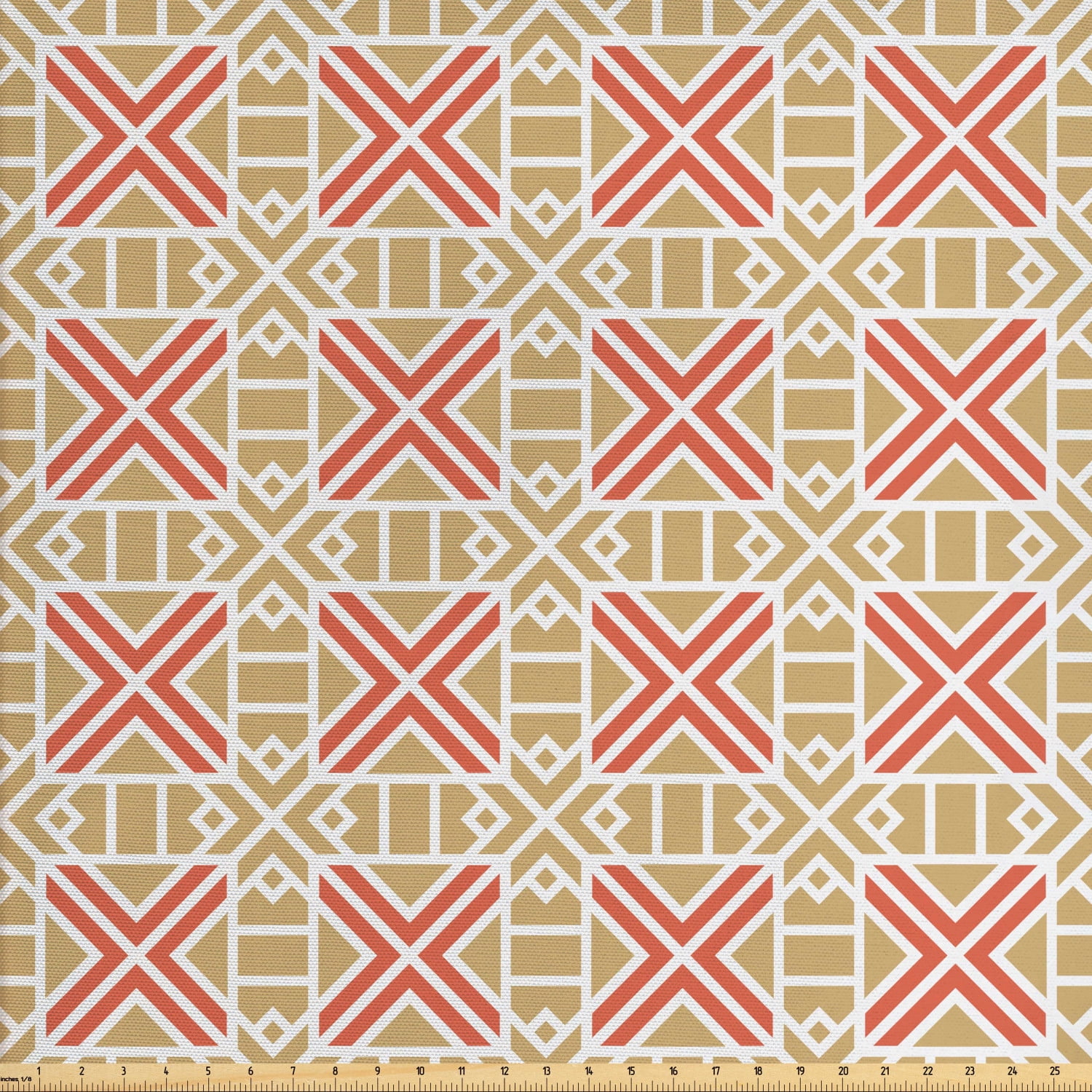 Abstract Fabric By The Yard Geometric Motif With Squares Stripes Diamond Forms Art Decorative Upholstery Fabric For Chairs Home Accents Sand Brown Salmon White By Ambesonne Walmart Com